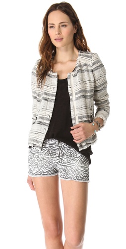 繼昨天開運粉紅外套的介紹之後, 要介紹這件是每個人都能穿也應該都敢穿的黑白IRO Lizzie Jacket, 這件我有試穿到, 整個就是休閒版小香外套的調調, 布料有種organic的質感, 這件好熱門, 居然尺寸都不齊了, 還有這裡跟這裡都有賣, 以上都是可以免費寄國外的網站.