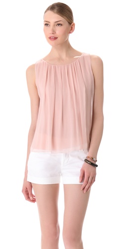 A.L.C. Britone Top(這件的條紋不太一樣的地方, 是它的條紋有點不對襯喔, 美國製);Ramy Brook Gabby Dolman Top(我對這種袖子有點透明的設計最沒有抵抗力了, 這件也是美國製, 整件是絲質的);alice + olivia Gathered Tank(這件絲質的裸粉色折子上衣是shopbop的獨家)