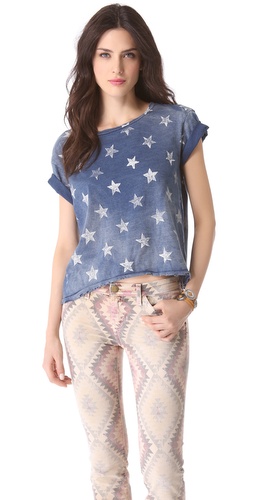 Tibi Milo Suiting Blazer(如果要找真正的長版外套, 這件Tibi家的很漂亮, 我最喜歡他的修長又偏窄的領子);Velvet Ida Top(這件上衣的顏色真亮眼, 美國製的, 訂價不高);Current/Elliott The Freshman Tee(這件星星上衣也是C/E家的, 下襬還故意做得好像非常有年紀那樣有點破破的啊, 話說model的褲子是Current/Elliott The Stiletto Skinny Jeans, 這個圖騰朋友有買不同色的, 只能說超特別);