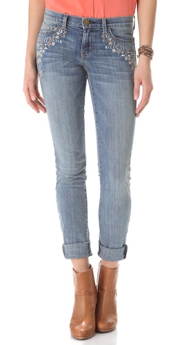 Current/Elliott The Rolled Skinny Jeans(這條仔細看, 口袋下方有繡圖騰, 很別緻, 又不會過分高調);Current/Elliott The Moto Stiletto Jeans(右邊是那種騎士型的牛仔褲, 整體感覺很貼身, 如果你喜歡緊緊的包覆感可以考慮 )