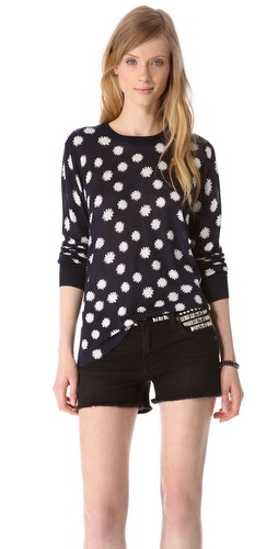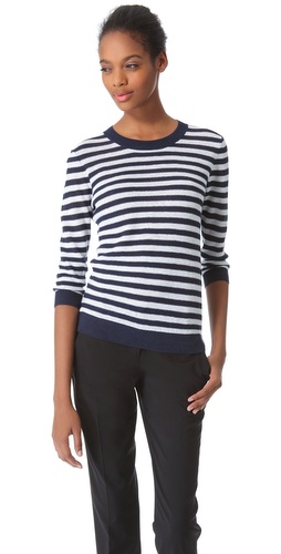 Wildfox Leopard Lover V Neck Tee(上面是豹子的上衣);Equipment Shane Crew Top(equipment家純絲質的小雛菊圖案上衣); Theory Rainee S Sweater(theory家的不敗條紋上衣)