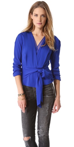 @Teagan Silk Blouse(這件藍色絲襯衫也很有氣質, shopbop的model穿起來像這樣, 腰部綁帶可以顯現腰身, 這件要買要快也是快斷貨了)