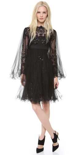 @Marchesa Embroidered Dress with Pleated Tulle(這件非常誇張當然價錢也是的Marchesa黑紗禮服打六折)