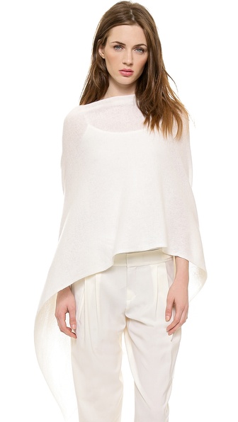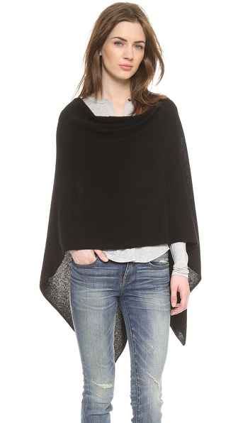 下面就是model批斗篷 Minnie Rose Cashmere Ruana Poncho的照片, 我覺得你不想麻煩, 就買黑色版本, 這個斗篷可以折成一個方塊放在皮包裡面, 有時候小朋友在外面臨時要毯子蓋還可以拿出來應急.