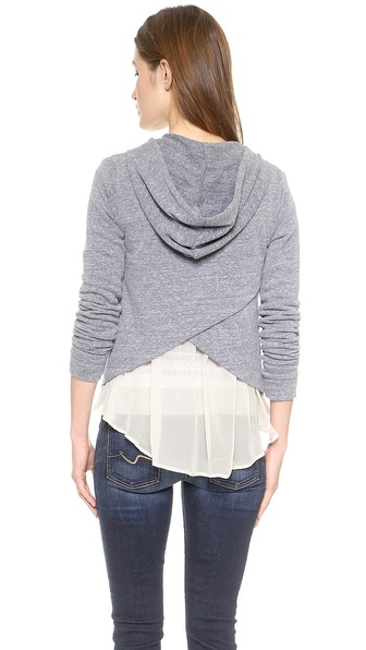 @ Splendid Clayton Chiffon Zip Up - Heather Grey/Cream(這件小外套是美國製的 現在在特價 後面的絲質假兩件式下襬是設計重點)