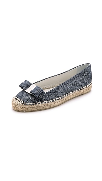 @ Salvatore Ferragamo Mandy Denim Espadrille Flats - Oxford Blue(真皮牛仔布印花草編鞋下七折尺寸齊)