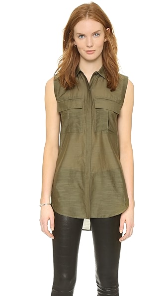 @ Helmut Lang Sleeveless Button Down Top - Camo(我覺得這件秋香綠絲棉混紡襯衫也好看)