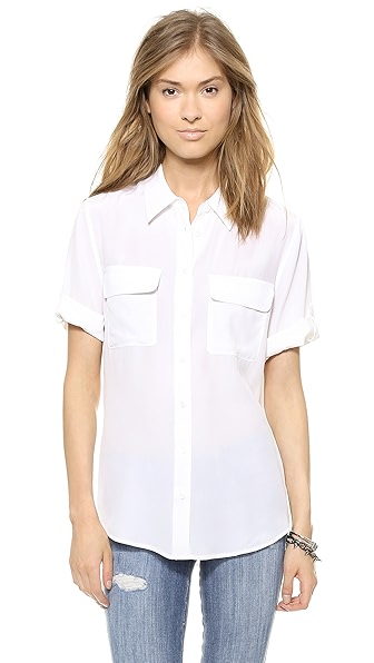 白襯衫是我很愛的絲質 Equipment Adalyn Blouse(XS), 想買他家的絲襯衫也可以從這款經典的 Equipment Slim Signature Blouse買起, 我穿XS, 不過shopbop有進最小碼的XXS喔!