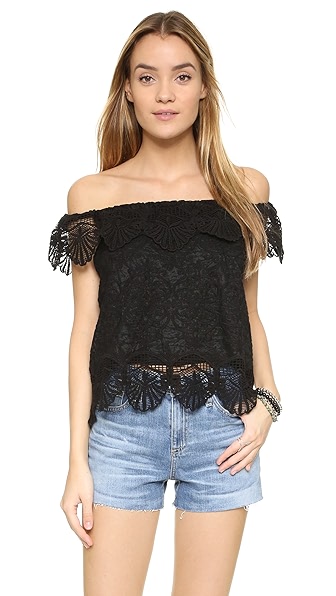@ Nightcap X Carisa Rene Seashell Top - Black(露肩短袖蕾絲上衣 滿好看的 美國製喔)