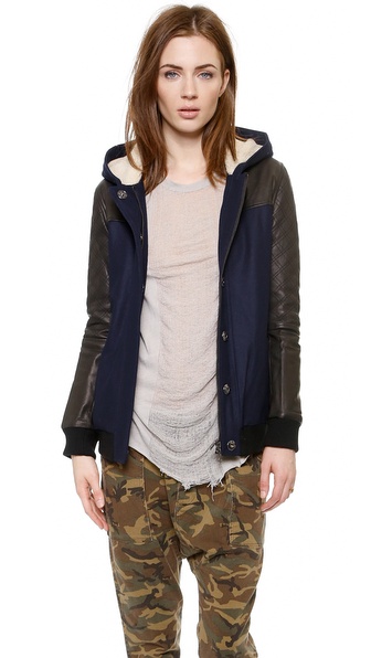 @ Doma Varsity College Hooded Jacket - Dark Blue(這件也很好看, 袖子是真皮的, 仔細看還有繡上菱格紋, 帽子內裡有鑲毛, 可以跟黑髮有個對比)