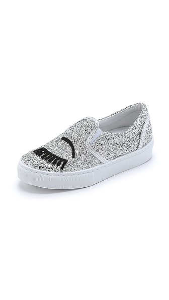 @ Chiara Ferragni Glitter Eyes Slip On Sneakers - Silver(眨眼運動鞋)