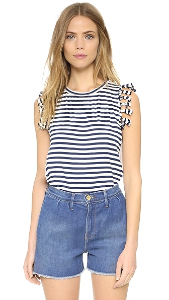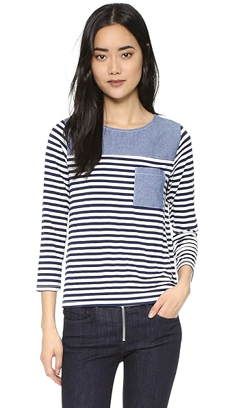 @ Equipment Brienne Crew Neck Top - Ivory/Ultramarine/Quinacridone(百搭條紋短袖)