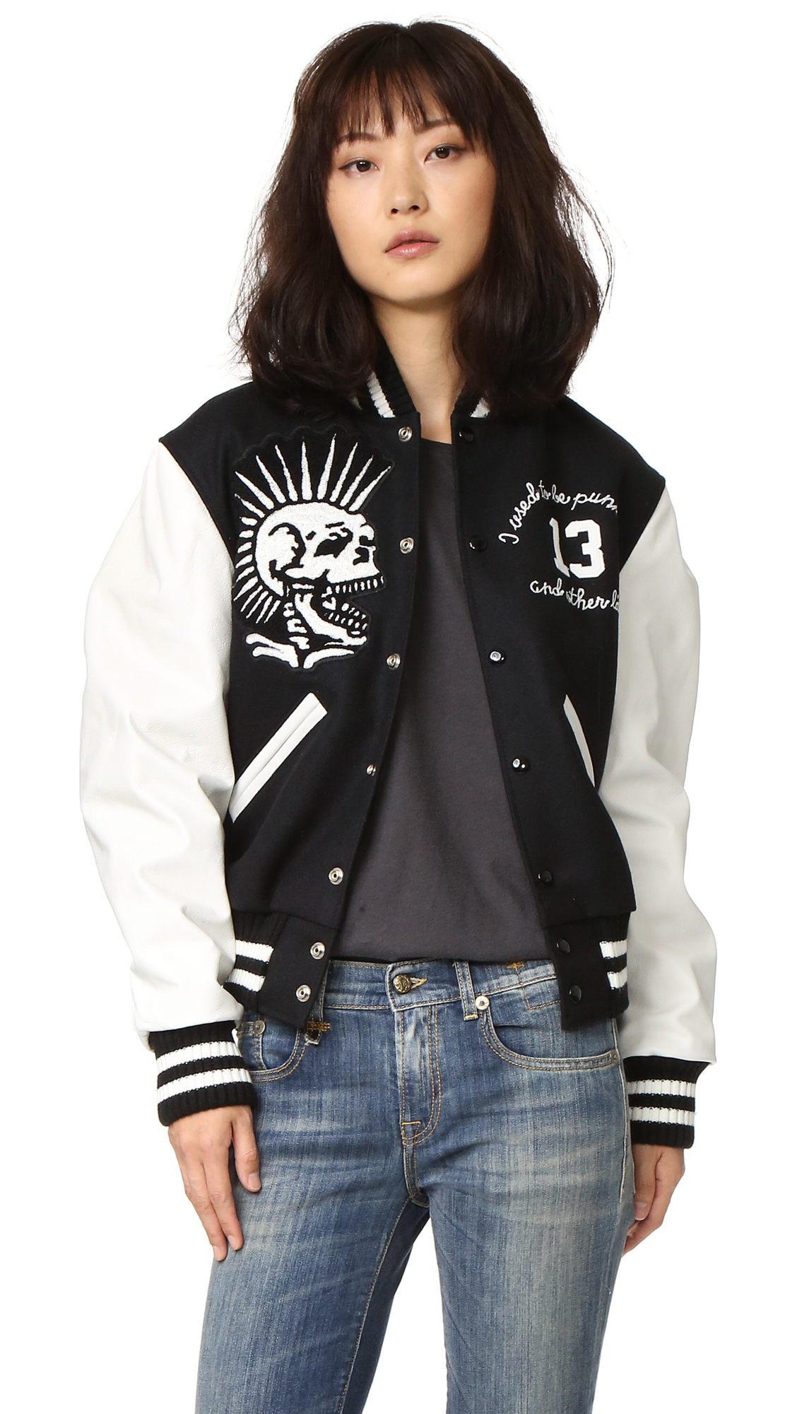 Opening Ceremony Varsity外套 + Jimmy Choo漸層亮片鞋 + R13牛仔褲 +超低價sketchers