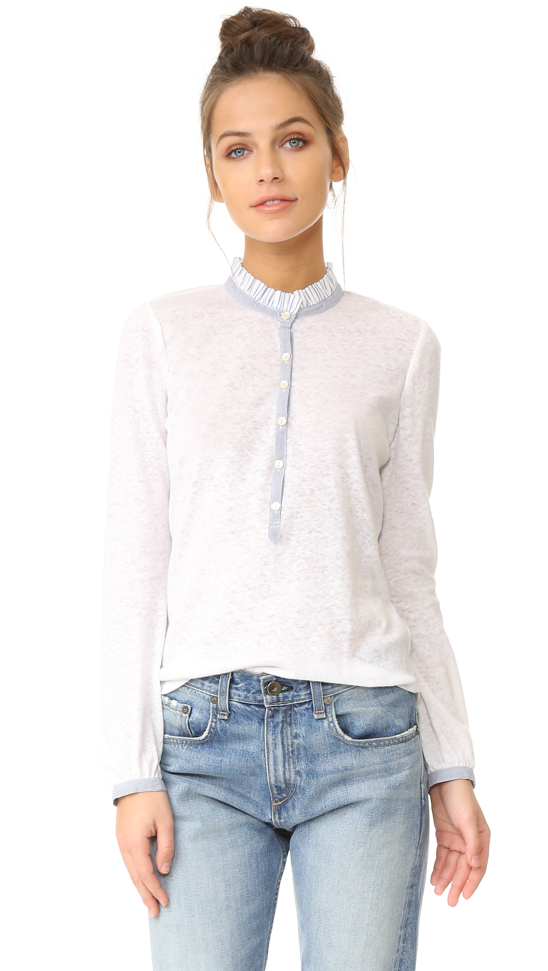 @ La Vie Rebecca Taylor Long Sleeve Henley With Stripes - Milk(這件上衣的領子我也喜歡)