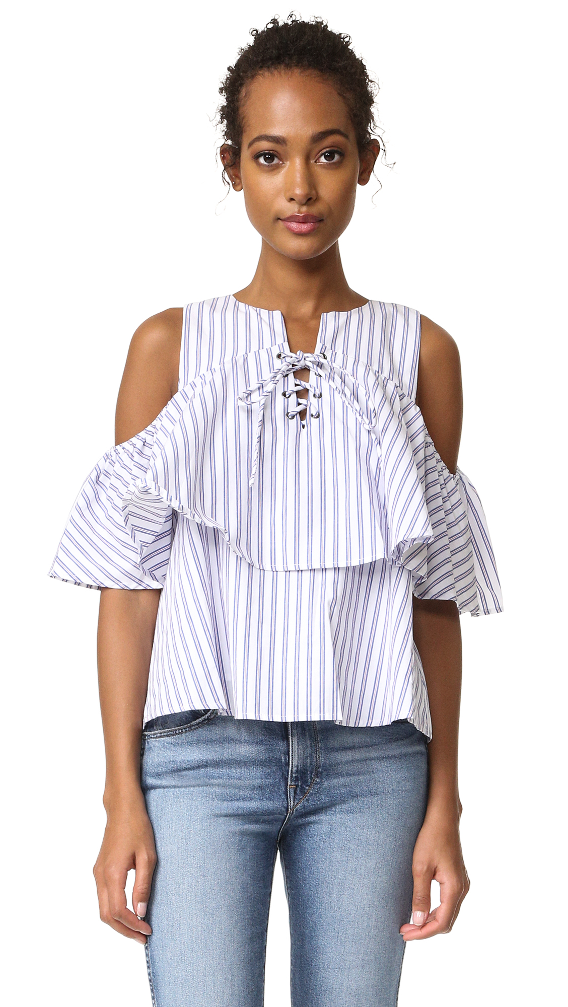 @ J.O.A. Lace Up Stripe Blouse - White/Blue(剛好可以搭配這件露肩上衣 很便宜只要$65)