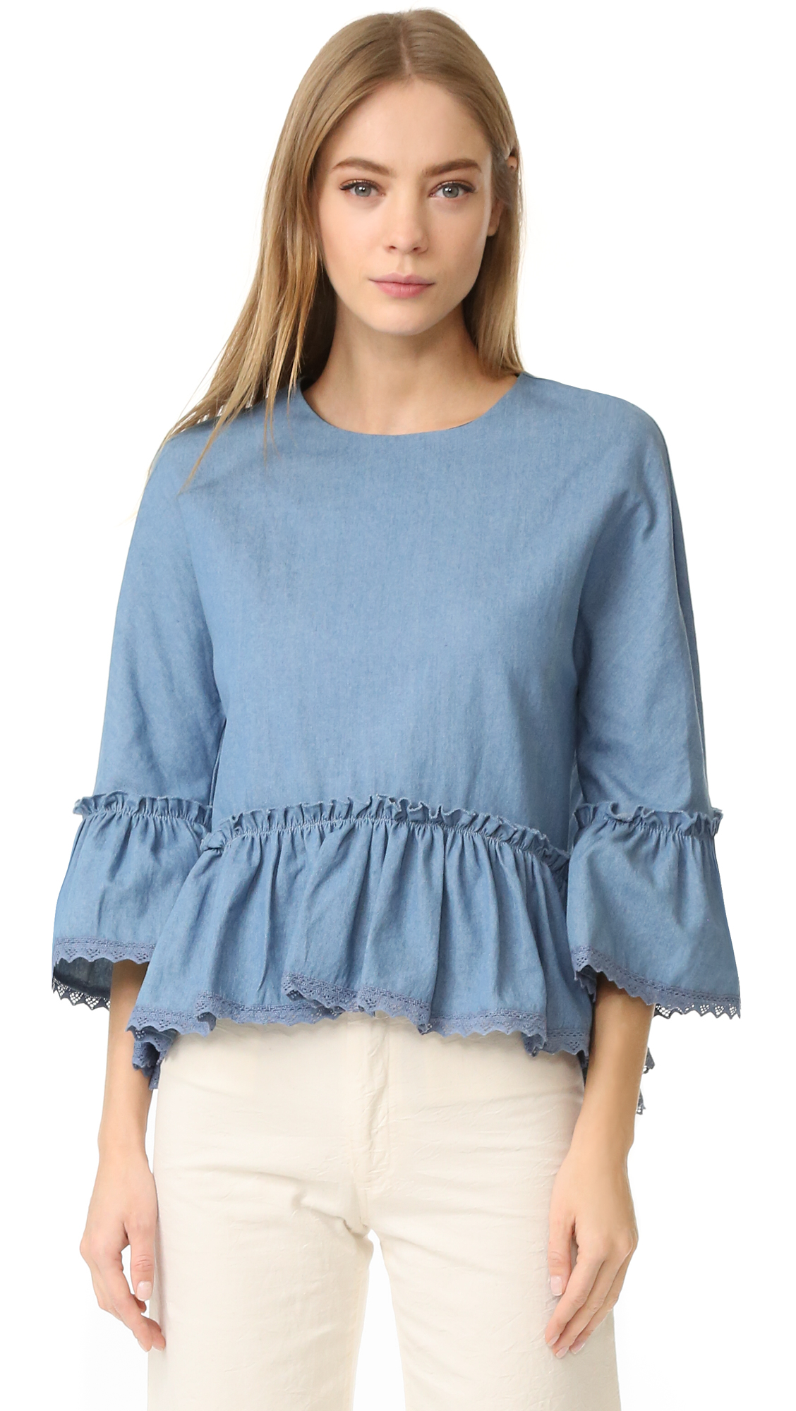 @ English Factory Denim Top With Crochet Lace Trim - Denim(還有這件ruffle的牛仔布上衣也很可愛 折扣後只要$49)