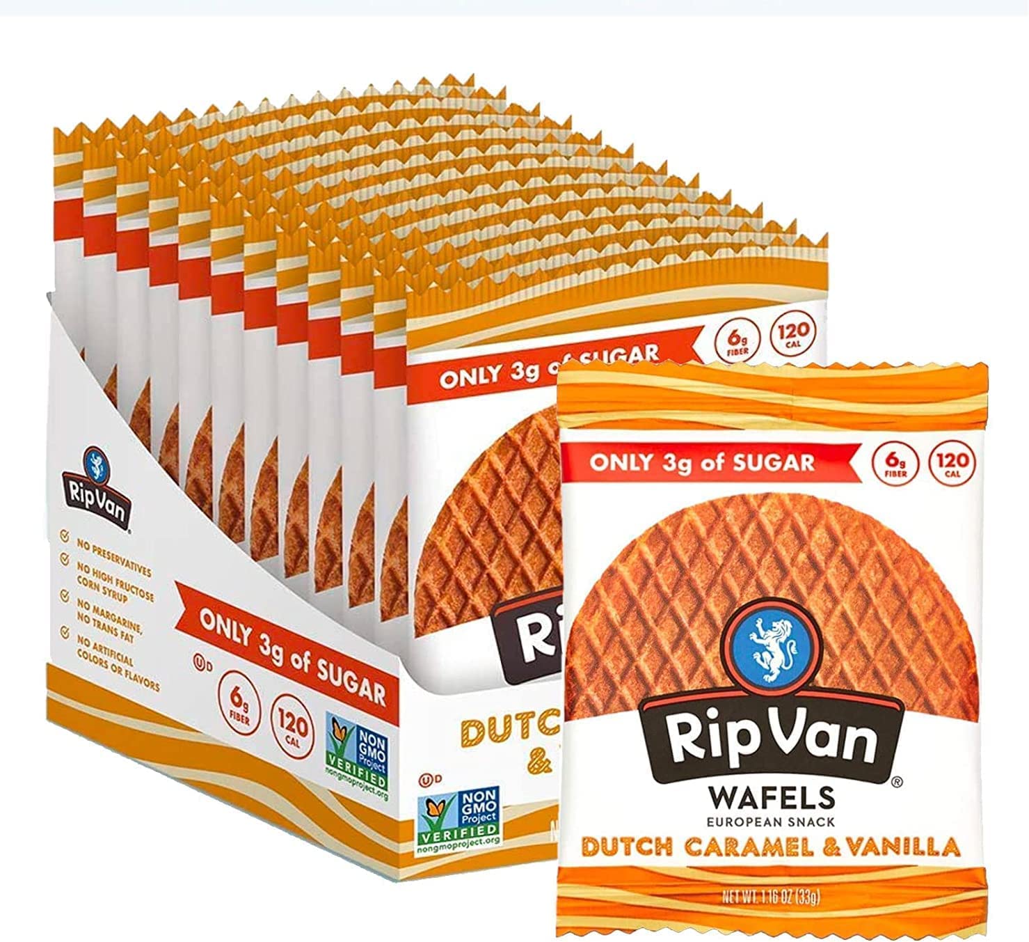 Rip Van WAFELS Dutch Caramel & Vanilla Stroopwafels(同樣是Rip Van的品牌出的焦糖格子餅 我們家非常喜歡吃 平常每個月都用Subscribe & Save讓他送來一盒! 他的糖分比同款餅乾還要少很多, 所以每次跟photodog分食的時候覺得比較放心 平常這定價不便宜耶! 現在看到Prime Day的特價很不錯喔)